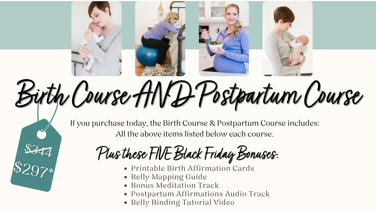 The My Essential Birth AND the My Essential Birth {Postpartum} Courses will give you the tools, support, and at-ease confidence on your journey to having a resourceful and joy-filled pregnancy, birth, and postpartum.