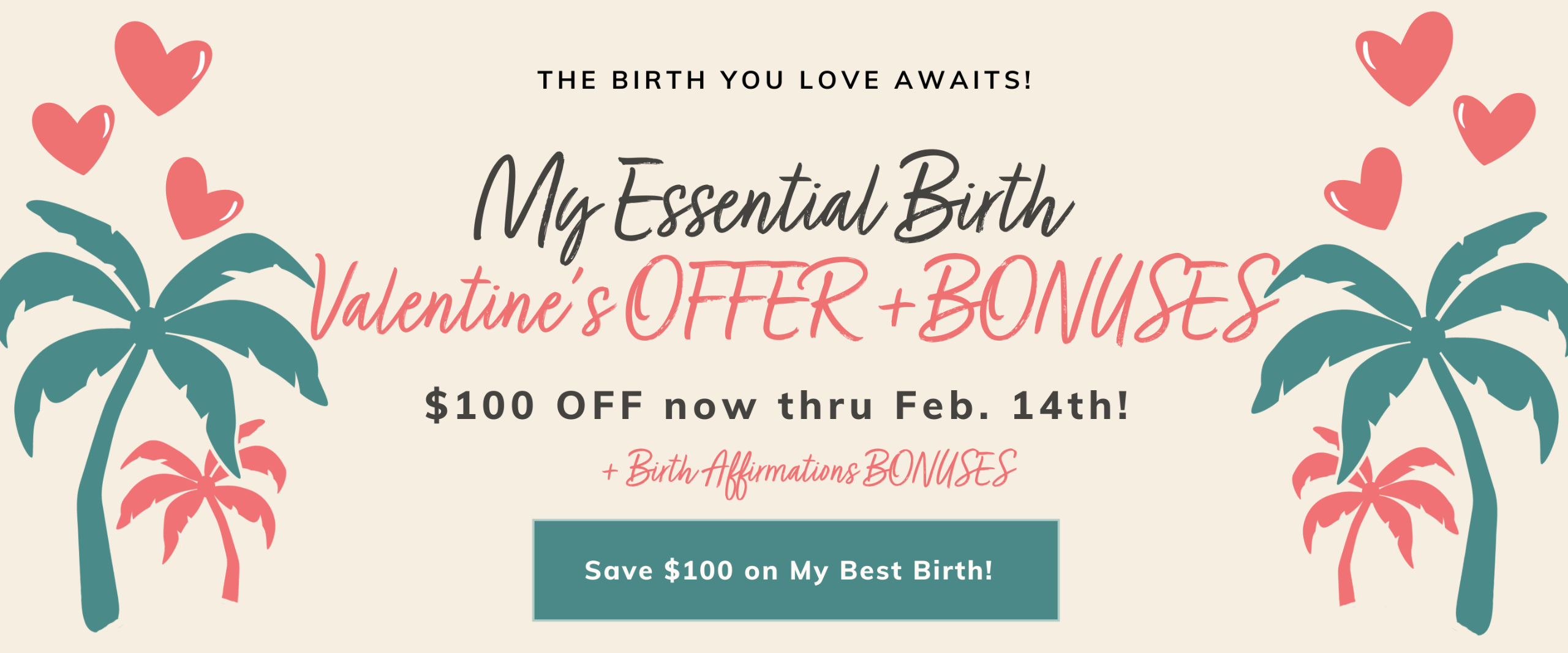 You’re aware of what an amazing, life-changing experience birth can be once you’ve effectively prepared your body, mind, and partner. You know . . . re-discovering your inner strength and beauty, having a radiant outlook on pregnancy, birth and motherhood, having an empowering birth story that you can pass down to your children, feeling a deeper connection to your partner and baby, etc. And you’re DOUBLY excited that My Essential Birth includes BIG BONUSES like the gorgeous, 200-page workbook that give you cheat sheets, trackers and guides that make effective “best birth” preparation a piece of cake!