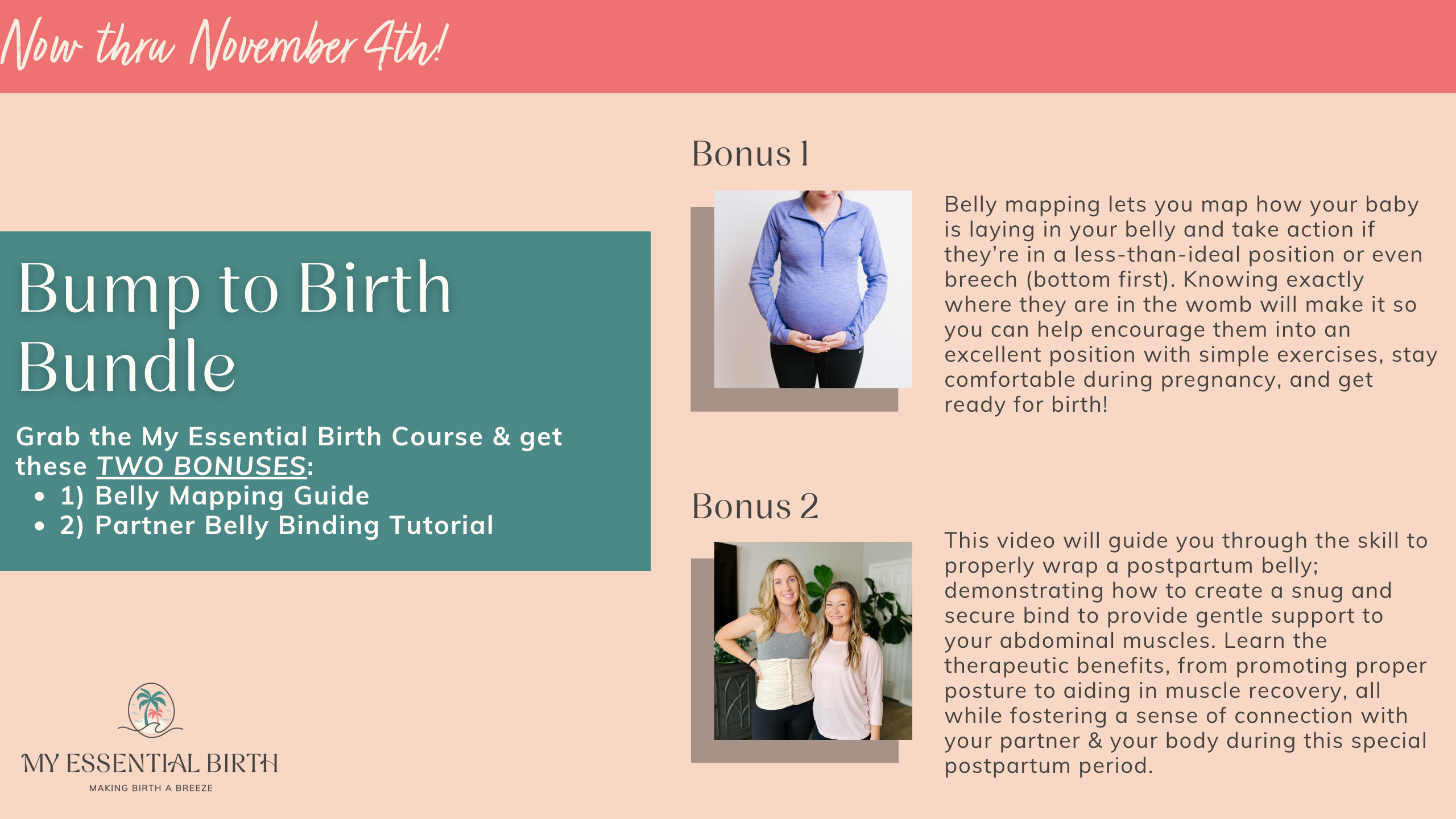 Your access to and use of the services offered by My Essential Birth is subject to My Essential Birth’s Terms of Use located at our website.